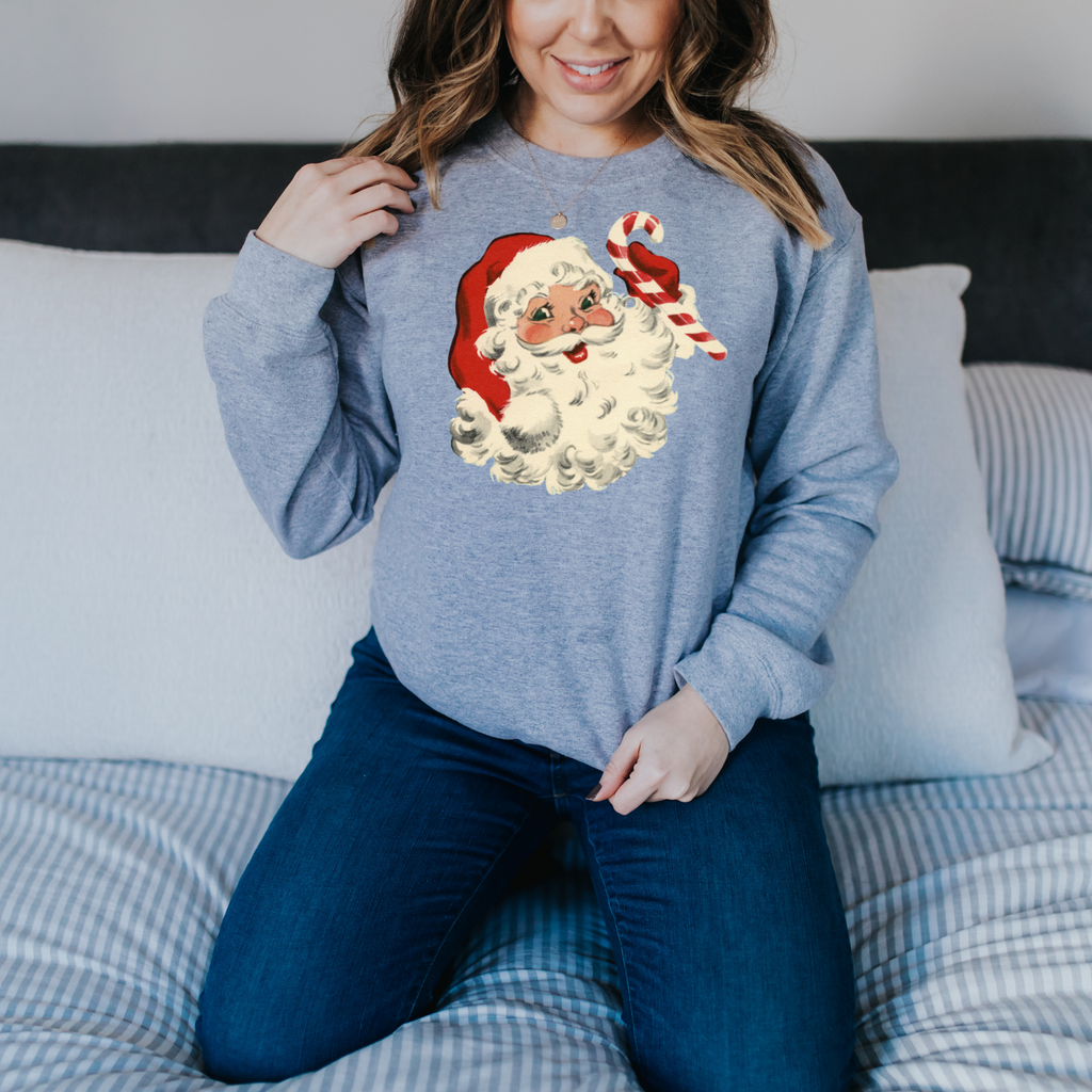 Vintage Retro Santa with Candy Cane Christmas Sweatshirt